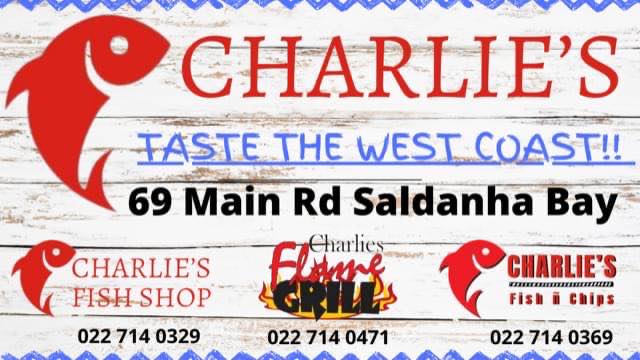 Listings >> Restaurants and Coffee Shops >>Take Aways Charlie’s Fish Shop Fish and chips in Saldanha 022 714 0329 Charlie’s fish shop has been supplying the West Coast for over 20 years Visit us for fresh hake and yellowtail. red romans, yellowfin tuna, salmon, snoek, mussels, oysters and more. 69 Main Road, Saldanha Is this your business?Claim it now.Make sure your information is up to date. Photo gallery All photos (1) Monday Tuesday Thursday Friday Saturday 8:00 AM - 6:00 PM Wednesday 8:00 AM - 5:30 PM Sunday CLOSED